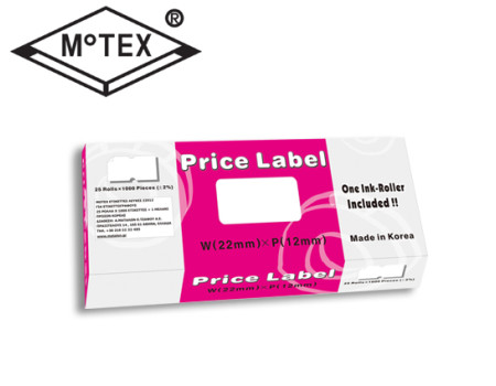 Αυτοκόλλητες ετικέτες της εταιρείας Motex. H συσκευασία περιλαμβάνει 20 ρολά ετικετών Χ 1000