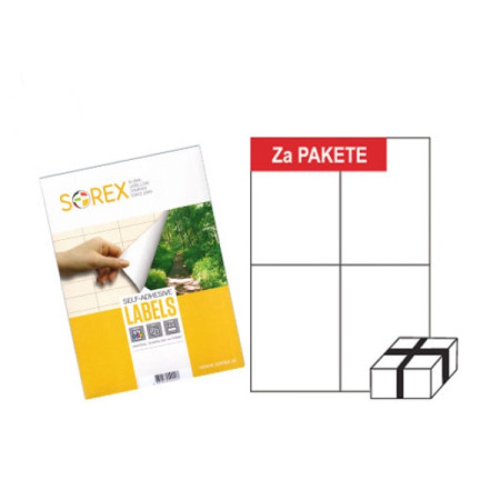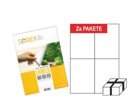 Ετικέτες Sorex αυτοκόλλητες Α4 για εκτυπωτή 105x148mm, συσκευασία 1 πακέτο, 2x2 ετικέτες/φύλλο, 100 φύλλα