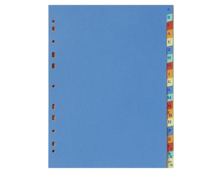 Διαχωριστικά Χάρτινα Α4 Αλφαβητικά Α-Ω χρωματιστά