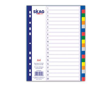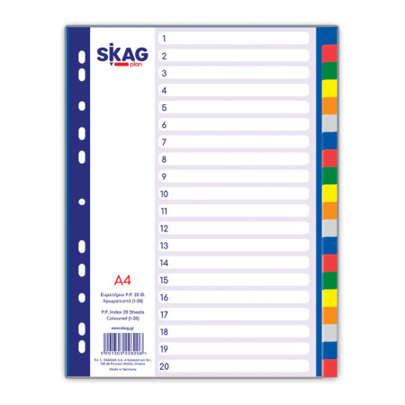 Διαχωριστικά Skag Α4 από Χαρτόνι, χρωματιστά 20 φύλλα.