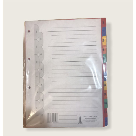 Διαχωριστικά Χάρτινα Α4 Αριθμητικά 1-12 χρωματιστά