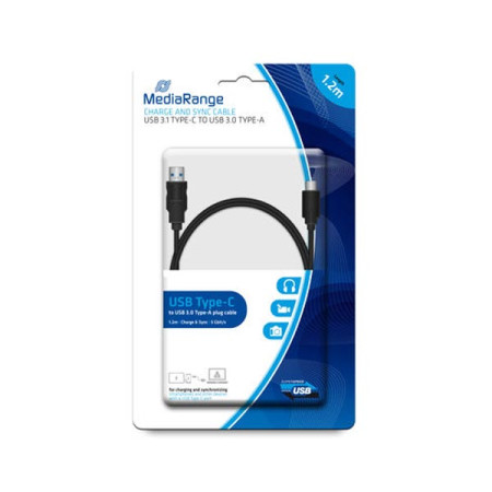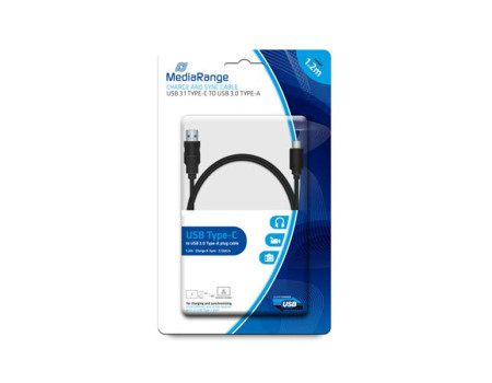 Καλώδιο Φόρτισης & Συγχρονισμού MediaRange Charge and sync cable,USB 3.0 to USB Type-C plug, 1.8m, black (MRCS182)