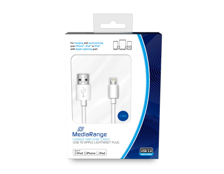 Καλώδιο για iPhone MediaRange Charge and sync, USB 2.0 to Apple Lightning® plug, 1.0m, white