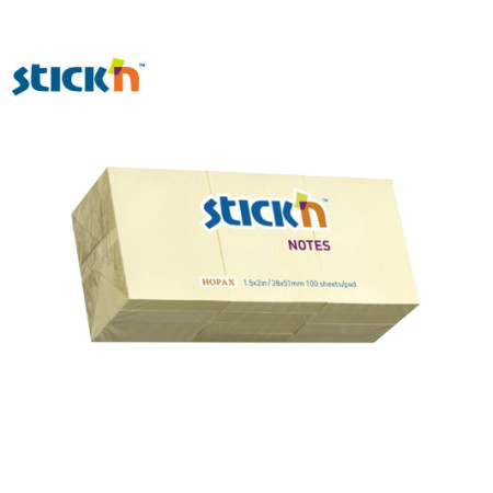 Stick'n Αυτοκόλλητα χαρτιά σημειώσεων 38Χ50mm 100 φύλλα κίτρινο χρώμα 3X4 τεμάχια