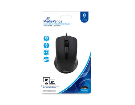 Το ενσύρματο ποντίκι με 3 πλήκτρα μπορεί να συνδεθεί γρήγορα και εύκολα μέσω του βύσματος USB