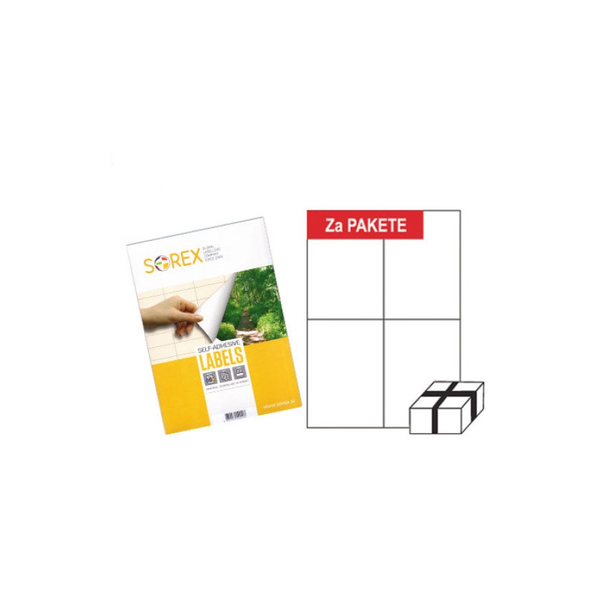 Ετικέτες Sorex αυτοκόλλητες Α4 για εκτυπωτή 105x148mm, συσκευασία 1 πακέτο, 2x2 ετικέτες/φύλλο, 100 φύλλα