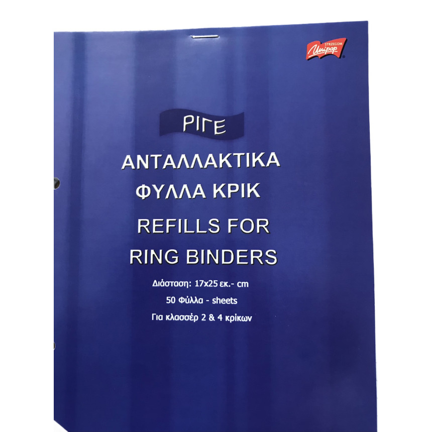 Ανταλλακτικά Φύλλα Β5 Κρικ για ντοσιέ, Ριγέ 17x25cm 50Φ.