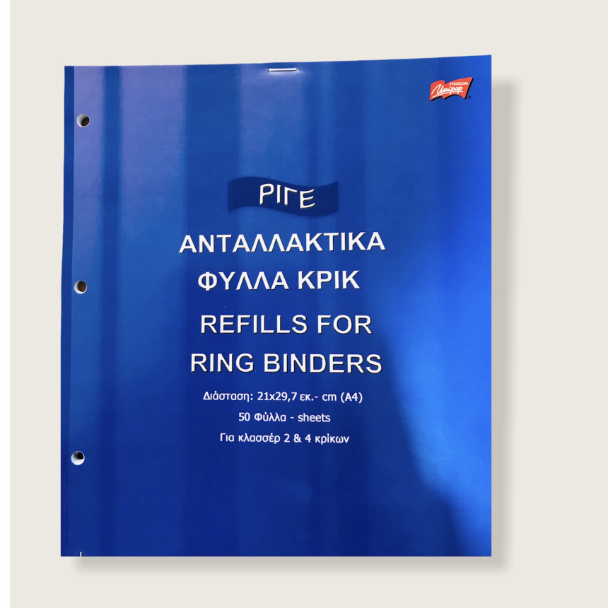 Ανταλλακτικά Φύλλα ντοσιέ κρικ, Α4 Ριγέ 21x29.7cm 50Φ.